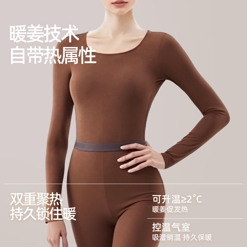 2025 New Model 10A Antibacterial Ginger Heating Women's Mask Thermal Underwear Set Men's High Elasticity Thin Inner Wear