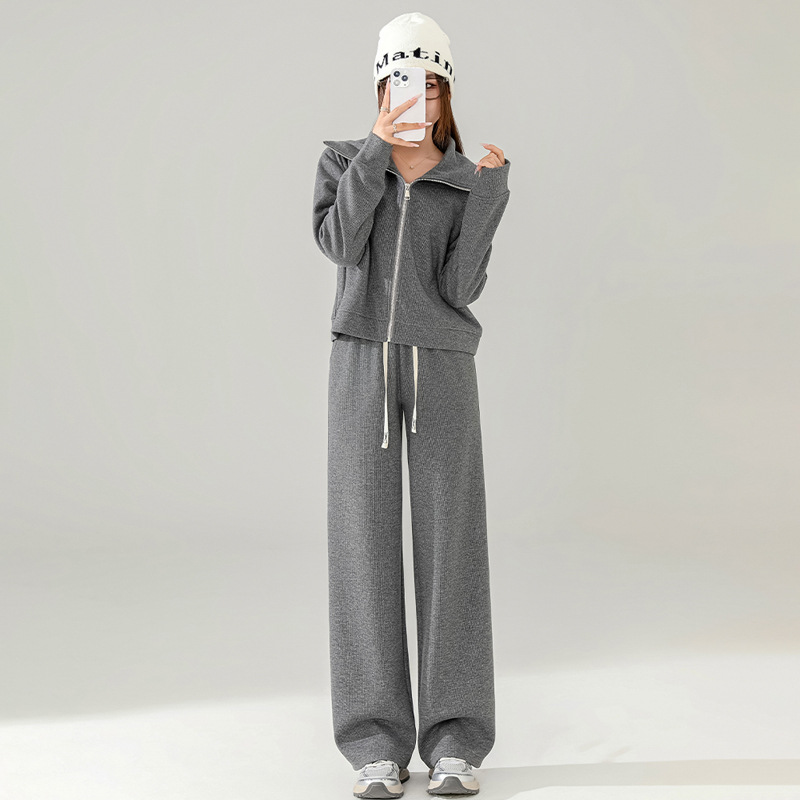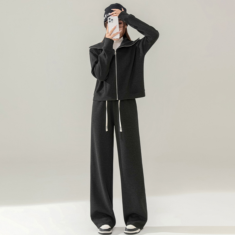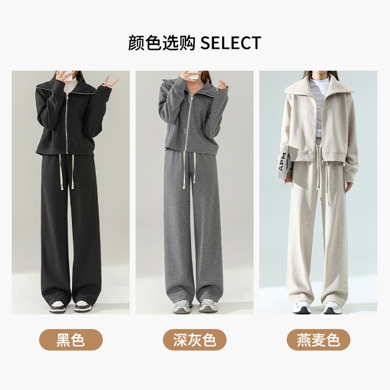 2025 New Spring and Autumn Fashion Suit for Women, Lapel Sweatshirt Jacket, Wide-Leg Pants, Autumn and Winter Korean Style Complete Set for Women