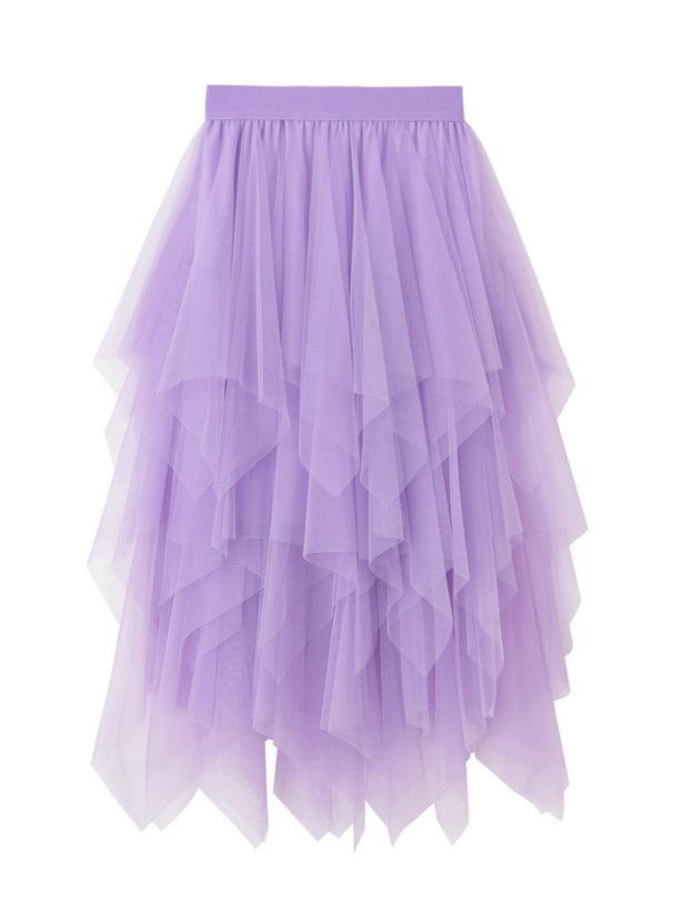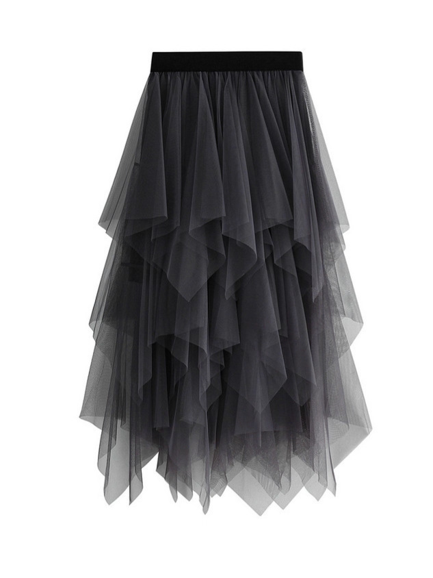 2025 New Summer Style High-Waisted Slimming Fairy-Like Irregular Mesh Skirt for Women, Wholesale for Foreign Trade