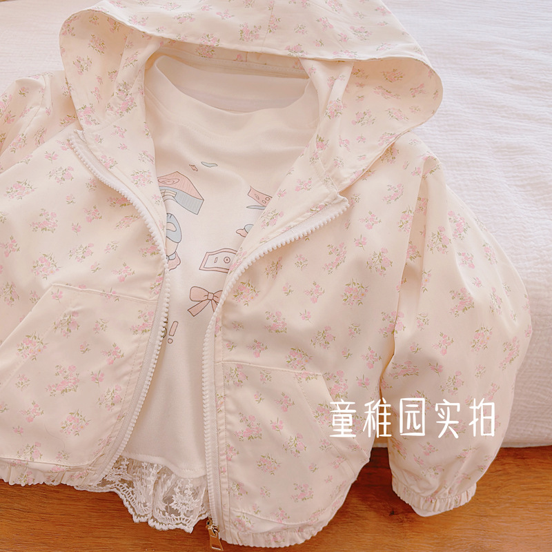 2025 New Year New Year Girl's Coat White Floral Hooded Coat Baby Girl's Trendy Foreign-style Coat