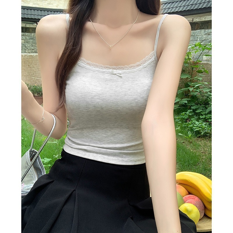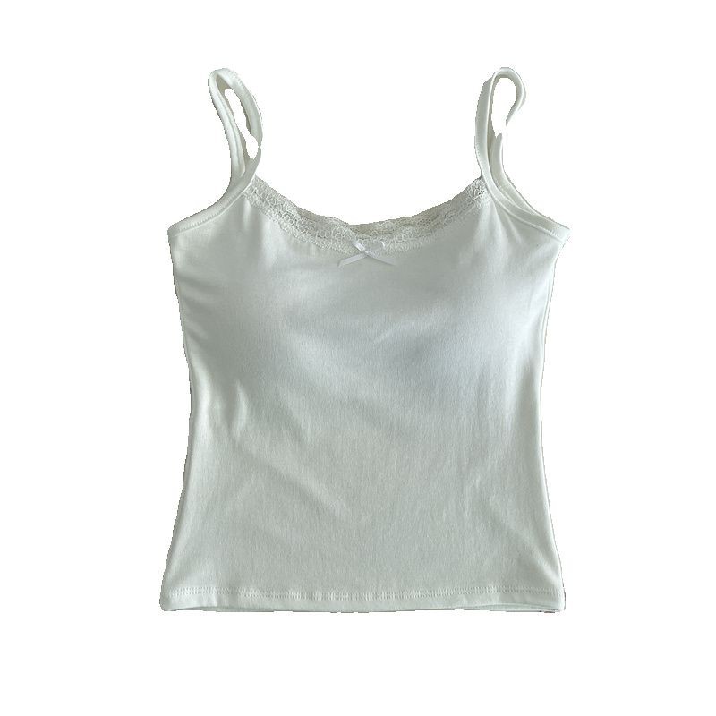2025 Pure Cotton Slim-fit Lace Bow Sling Women's Vest with Chest Pad Solid Color Base Shirt Inner Top