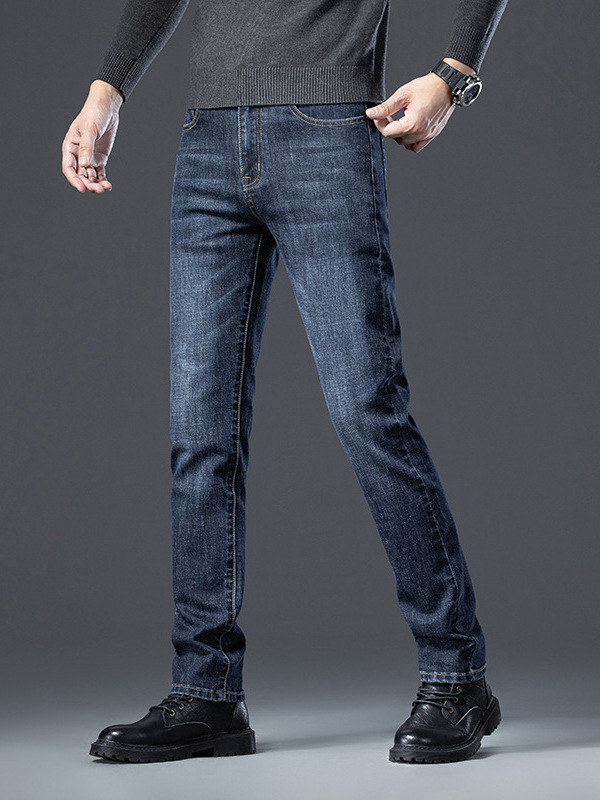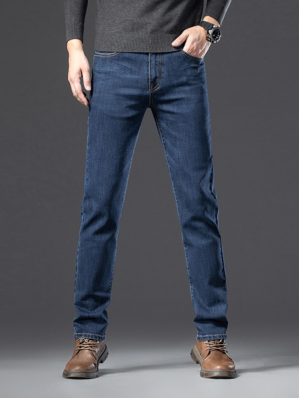 2025 Spring and Autumn New High-End Men's Slim Fit Stretch Casual Jeans Winter Fleece-Lined Warm Men's Pants