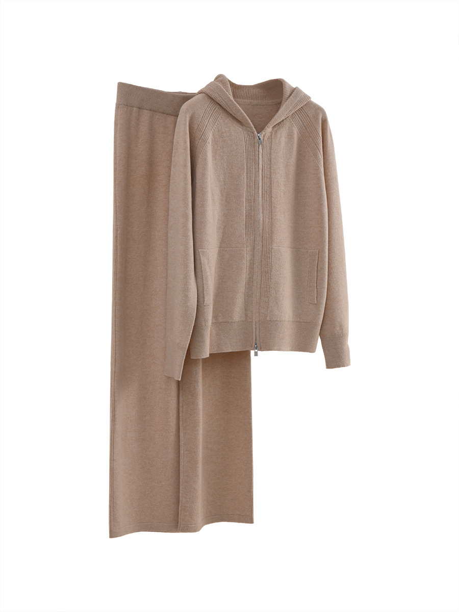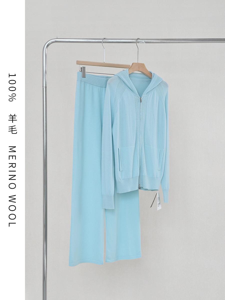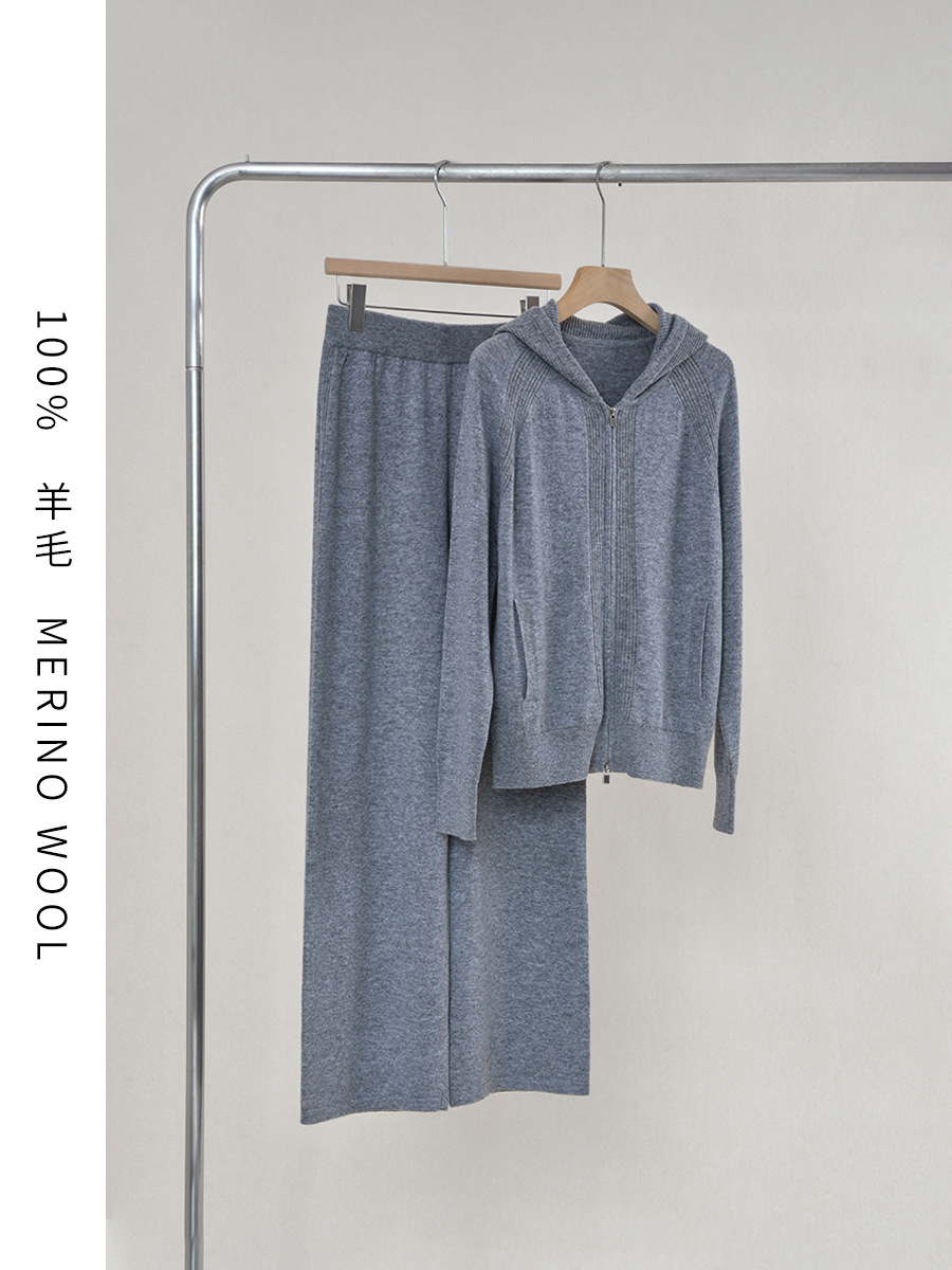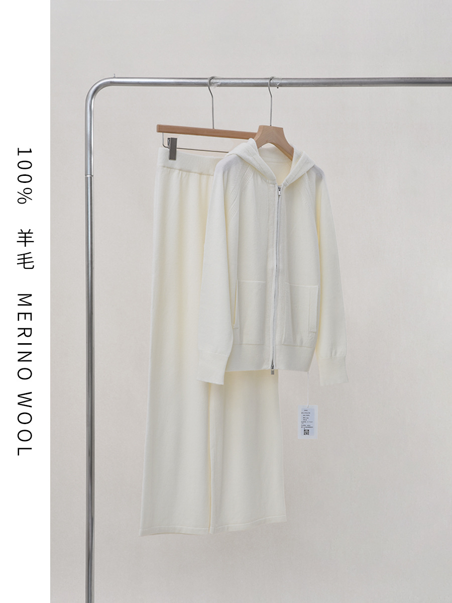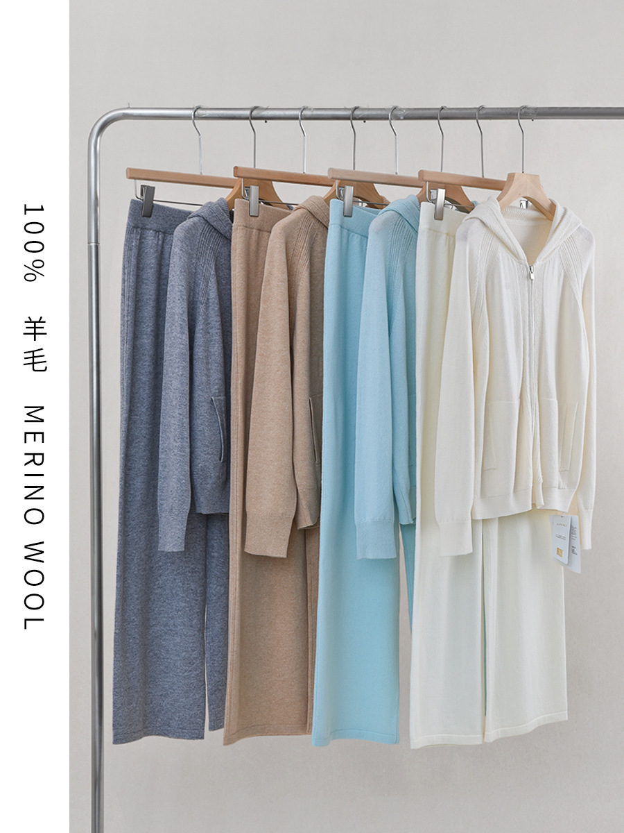 2025 Spring Fashion Casual Suit Women's Lp Pure Wool Casual Hooded Knitted Cardigan Jacket Loose Wide Leg Pants