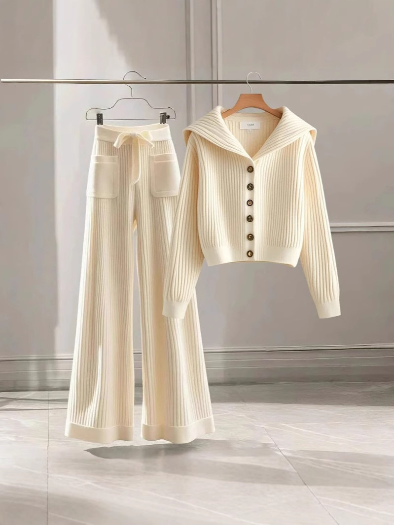 2025 Spring Temperament suit Women's High-end Atmospheric Soft Waxy All-match Knitted Top Casual Lazy Slimming Straight Pants