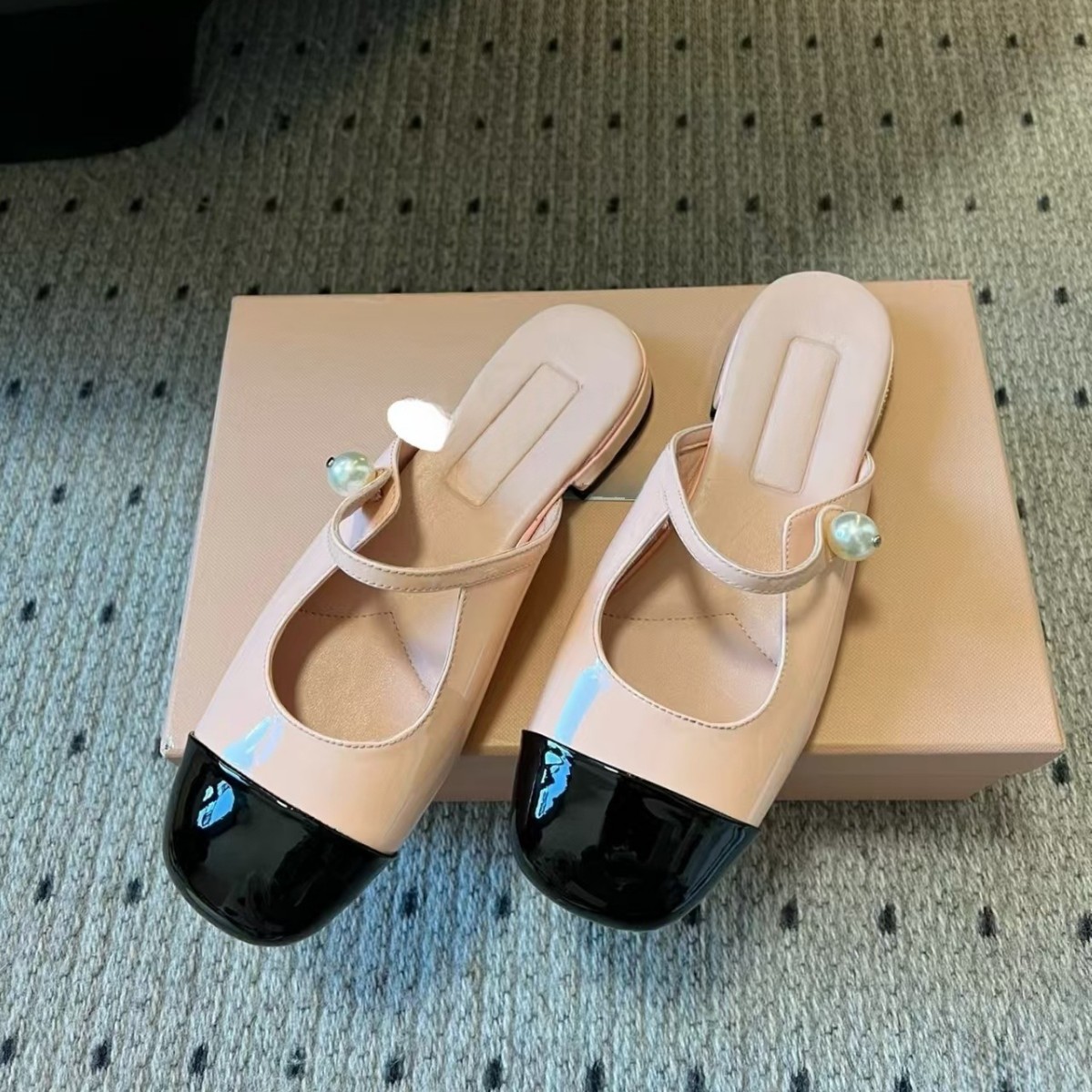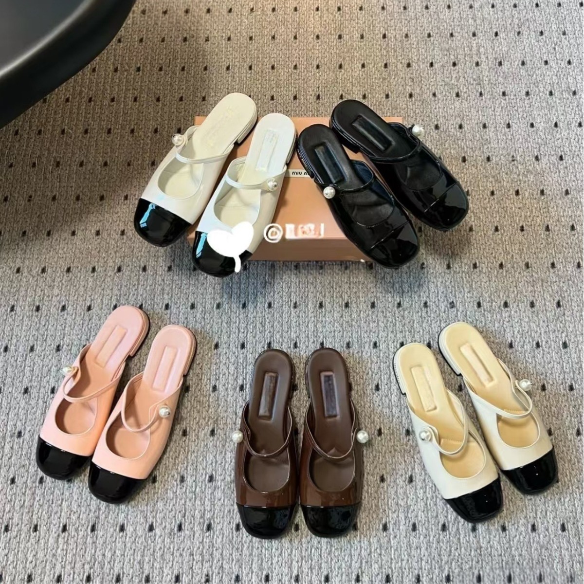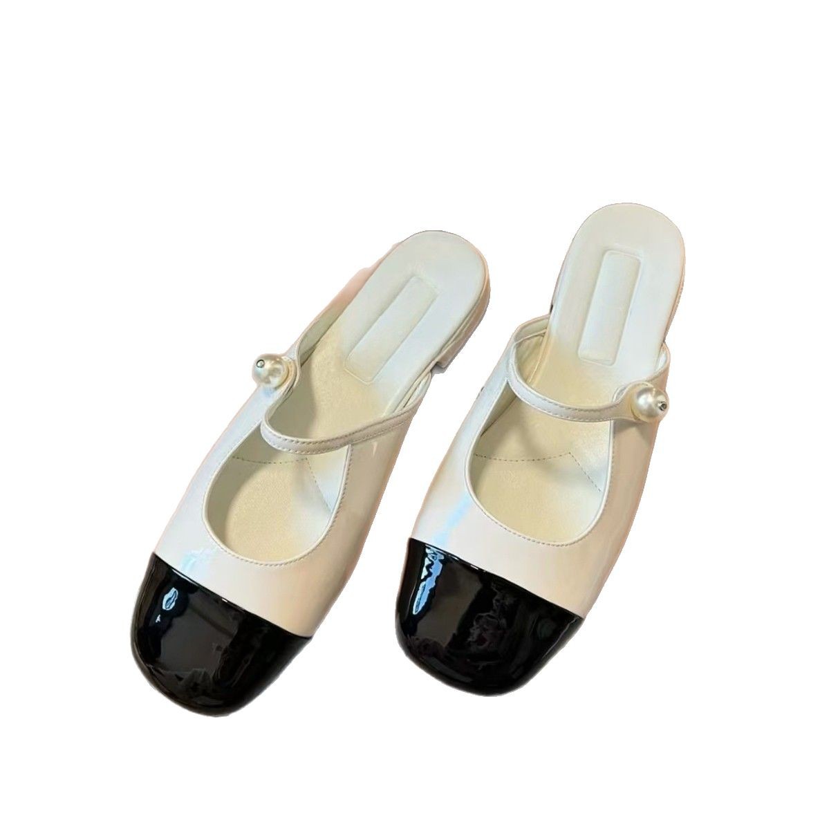 2025 Summer New Bright Leather Bag Head Half Slippers Women's Thick with Fairy Style One-word Buckle Outer Wear Sandals and Slippers for Women