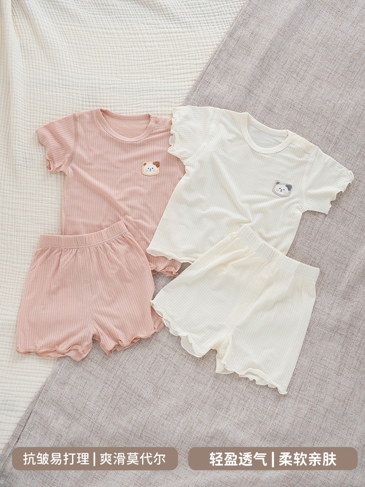 2025 Summer Ultra-thin Split Modal Lace suit Baby Girl Pajamas Princess Short-sleeved Home Clothes