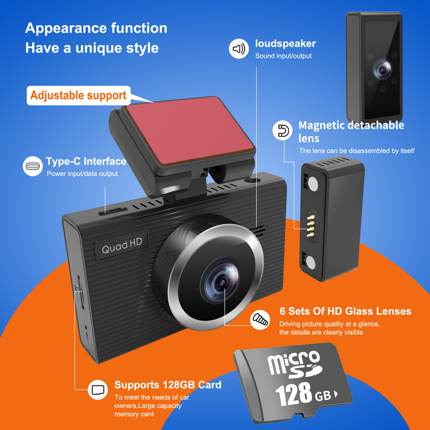 2025 Wire-Free Driving Recorder Magnetic 3-Recording Parking Monitoring 24-Hour Wi-Fi Car and Exterior Mobile App