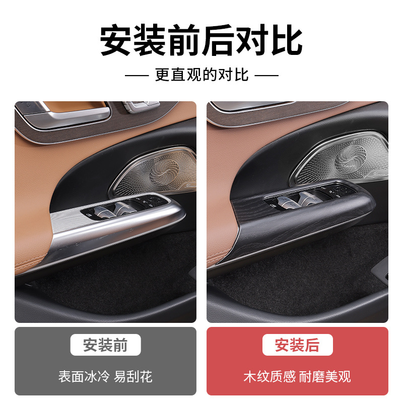 24-25 Mercedes-Benz New E-Class E300L/E260 High Wooden Lift Window Key Panel Frame Car Interior Decoration Sticker Accessories