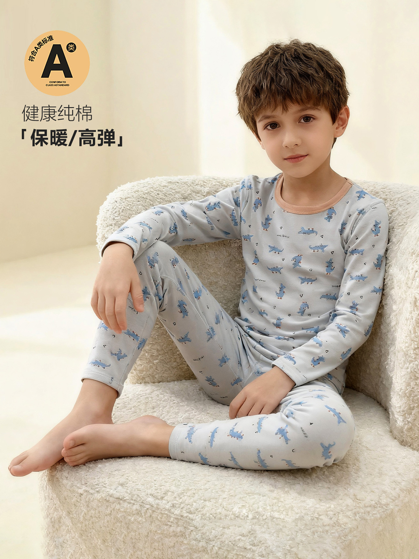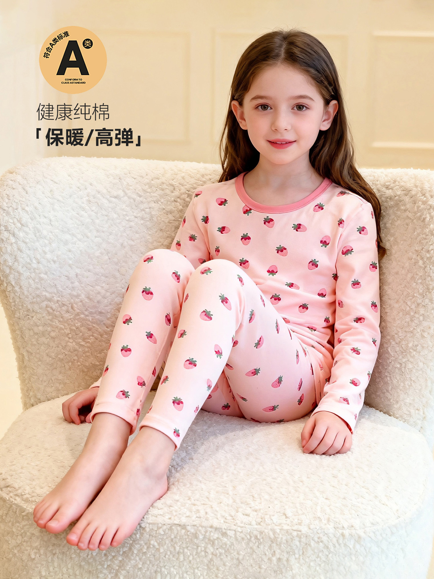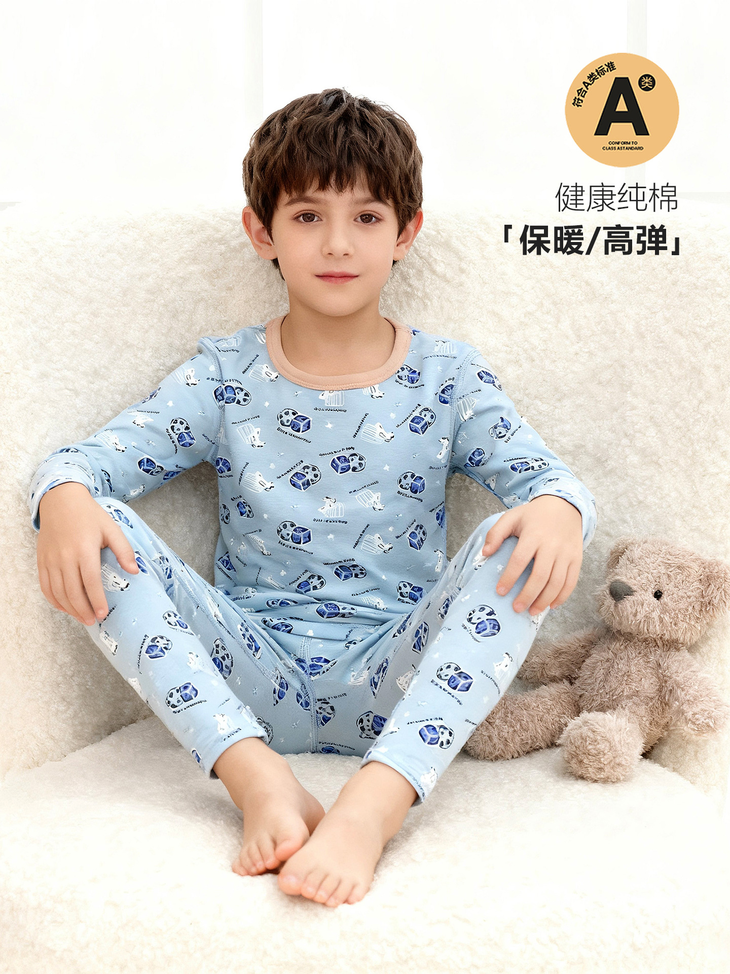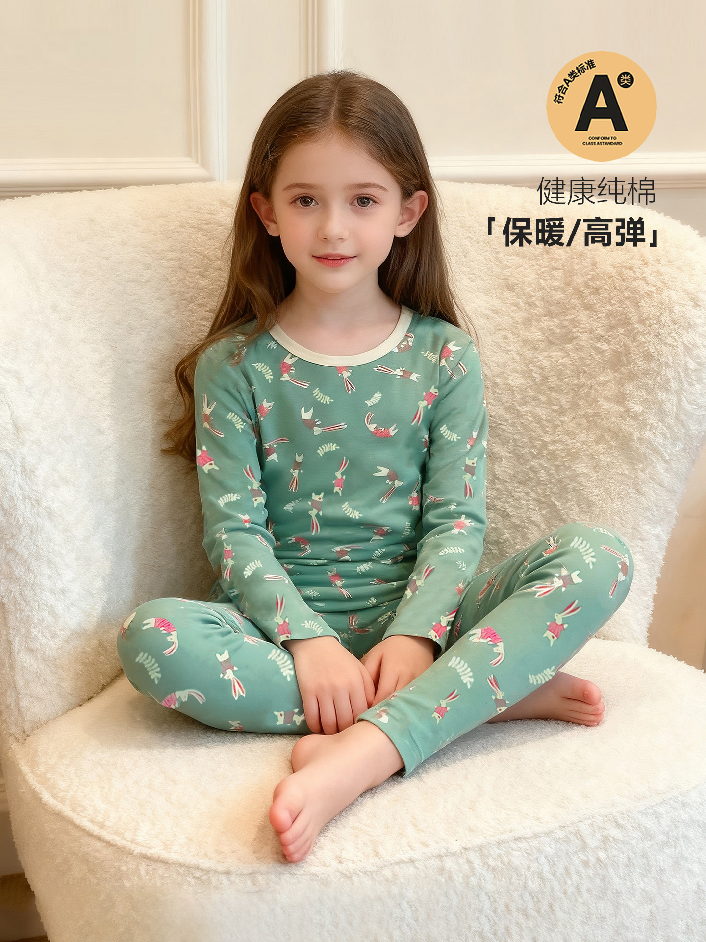 25 Autumn and Winter Thickeneded Class a Cotton Kidsren's Autumn Clothes and Long Pants for Baby Girls Boneless Home Pajamas Boys Home Clothes Set