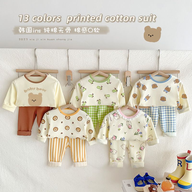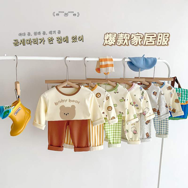 25 new Korean ins children's home clothes suit cotton boneless autumn pants men's and women's pajamas baby autumn and winter