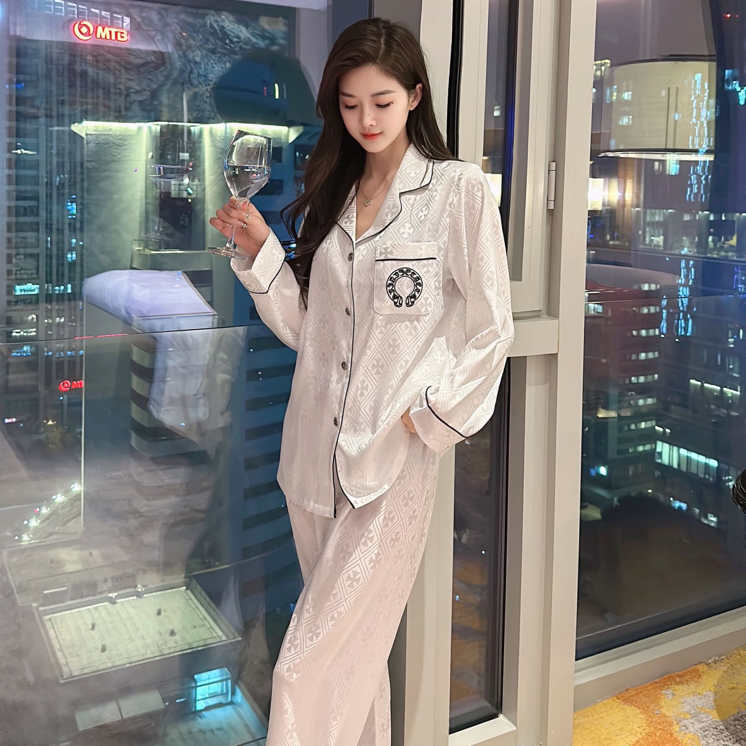 25 Spring and Autum New Style Accessible Luxury High-End Ice and Snow Silk Couple Pajamas for Men and Women Simple Home Wear Sets Long Sleeves