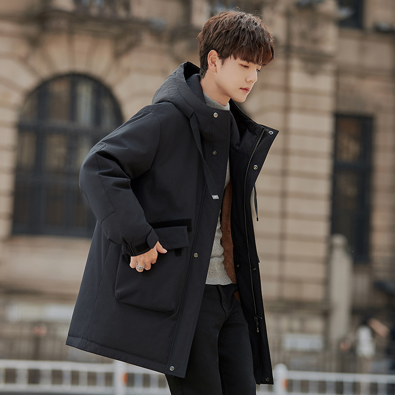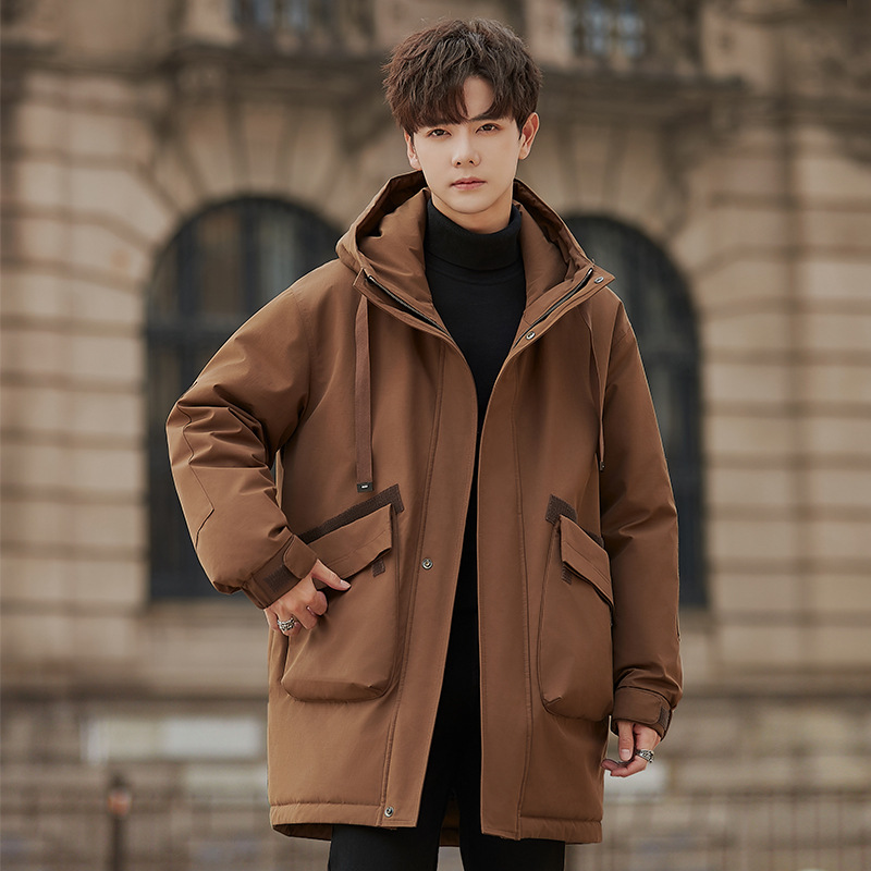 2900 new parka down jacket men's winter mid-length coat thickened fur integrated rabbit fur liner fashion brand