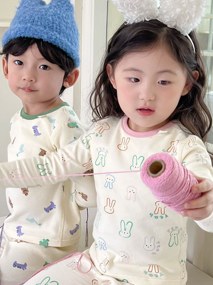 【300G】Autumn and Winter Children's Home Wear, Baby Seamless Pure Cotton Two-Piece Set, Autumn Clothes and Pants for Boys and Girls, Loungewear