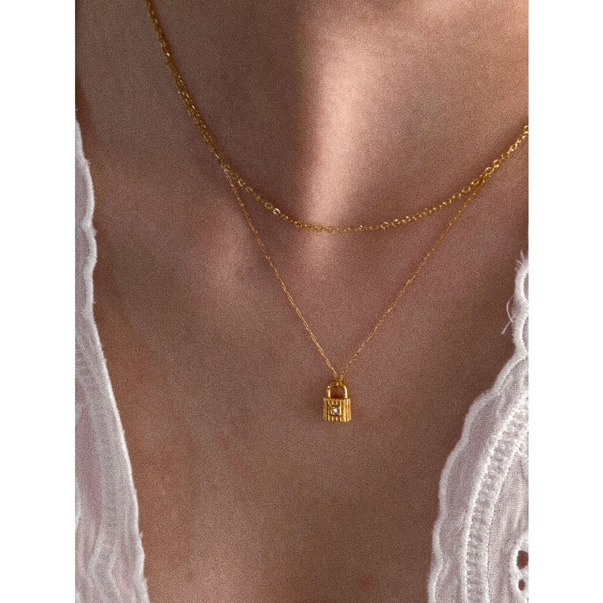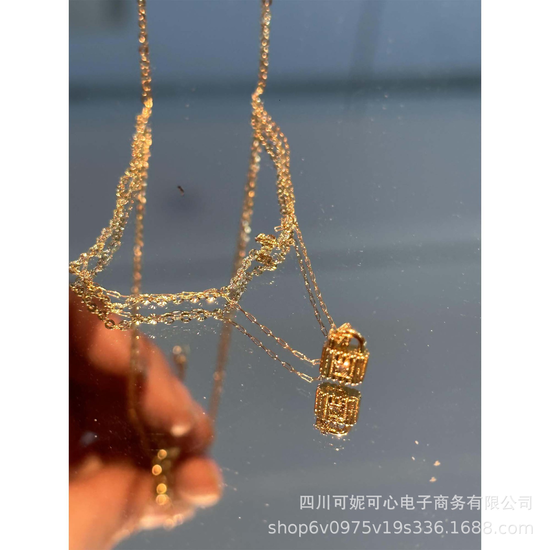 301 Daily Miscellaneous Chain Non-Fading Double-Layer Small Lock Necklace High French Retro Exquisite K Gold Quality H17-6