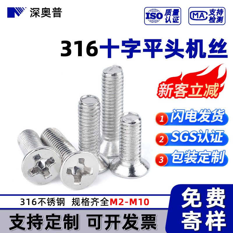 316 stainless steel cross countersunk head machine screw GB819 cross recessed flat head machine screw M2M3-M10