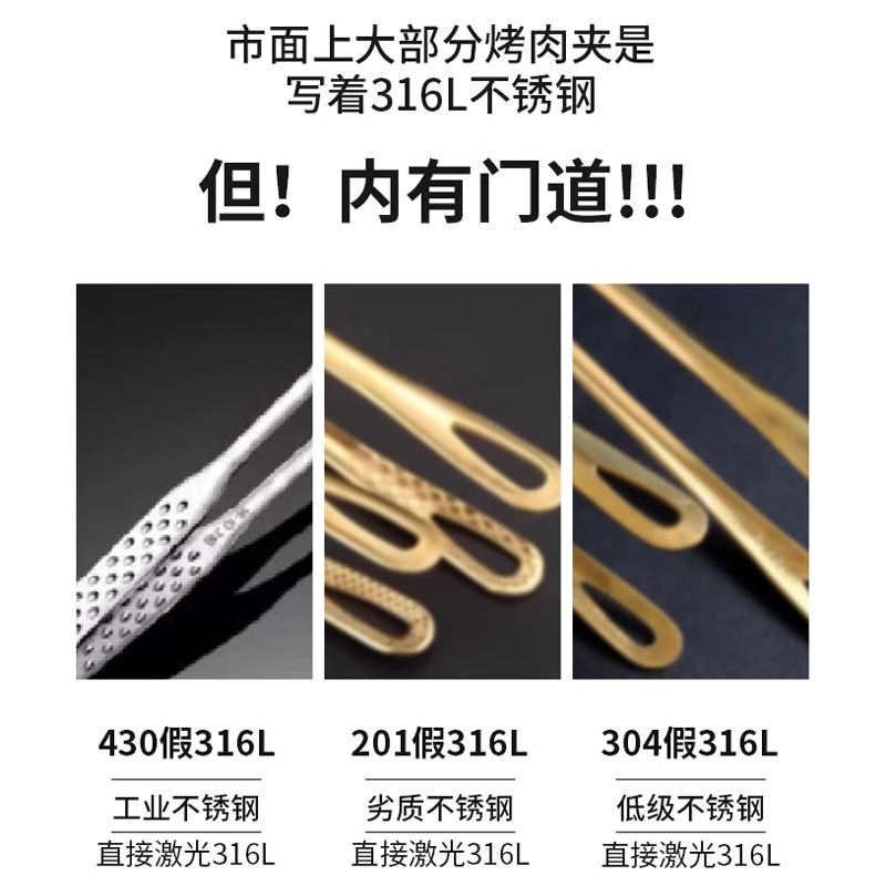 316L Stainless Steel Korean Barbecue Clip Anti-scalding Barbecue Clip Kitchen Food Cooking Steak Buffet Small Clip