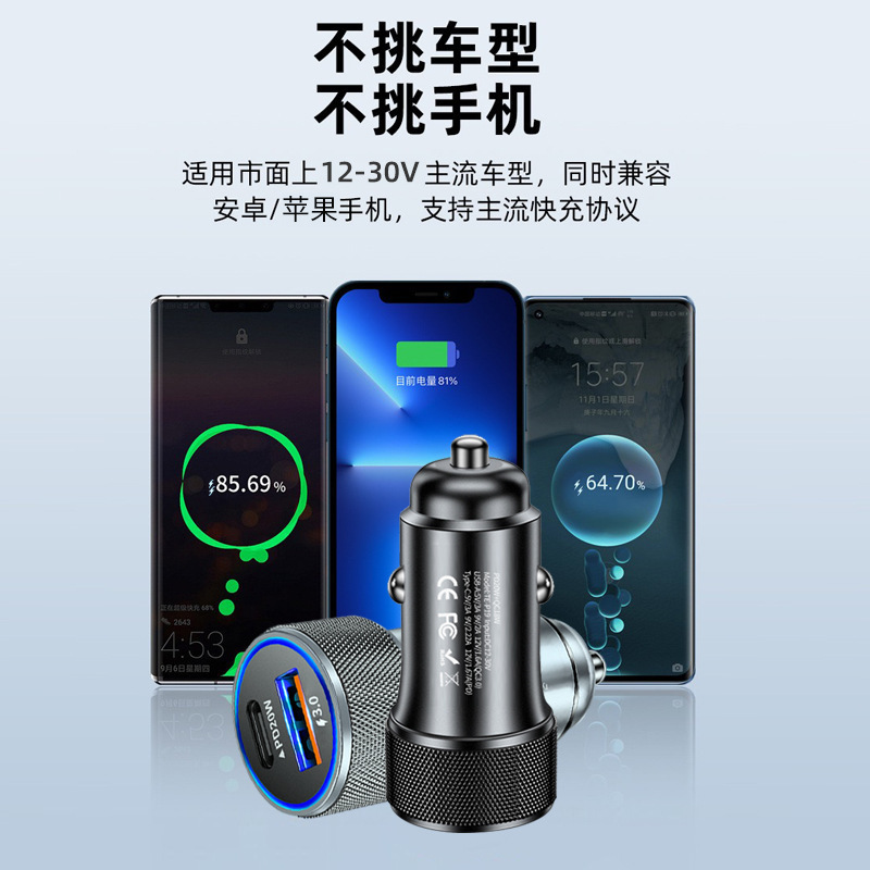 38W Dual-Port One-To-Two Pd Car Charger Dual Fast Charging Suitable for Huawei, Apple, Xiaomi Mobile Phones Car Charger