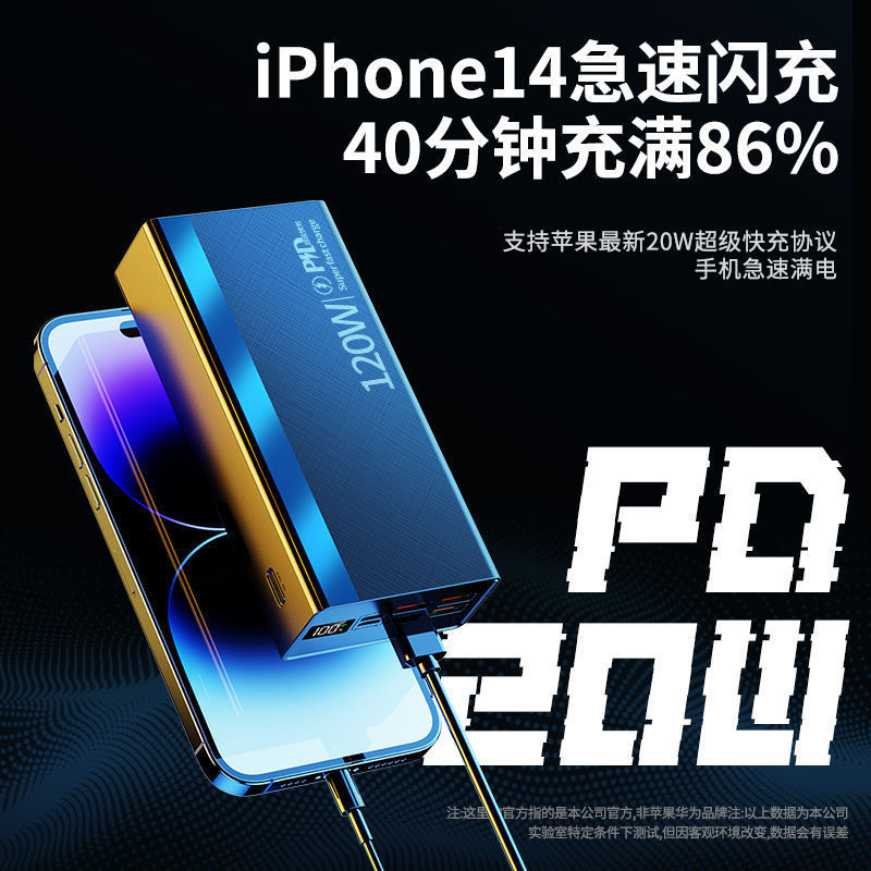 3C Certified 120W Super Fast Power Bank 80000 Large Capacity 50000 Mah 20000 Portable Power Bank