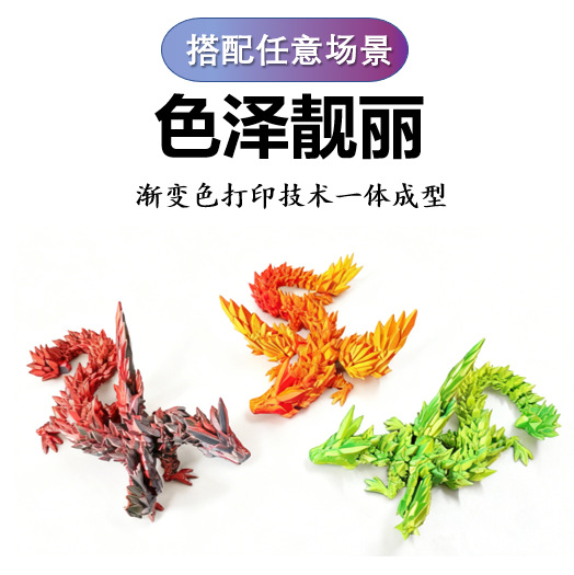 3D Printed Crystal Flying Dragon with Wings and Movable Joints, Cross-Border Stall-Selling Children's Toy