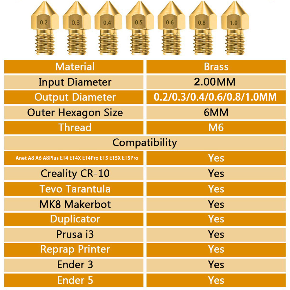 3D printer accessories 1. 75MM MK8 brass nozzle extruder print head nozzle 13 * 6mm