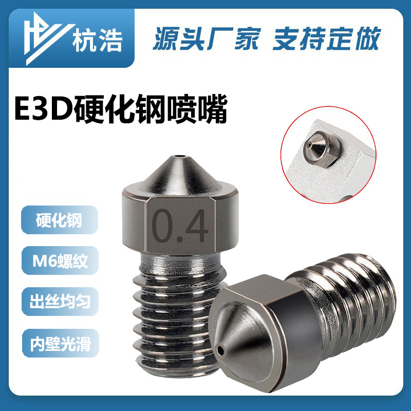 3D printer nozzle hardened steel E3D nozzle V5V6 printing nozzle hard steel high precision wear-resistant M6 thread