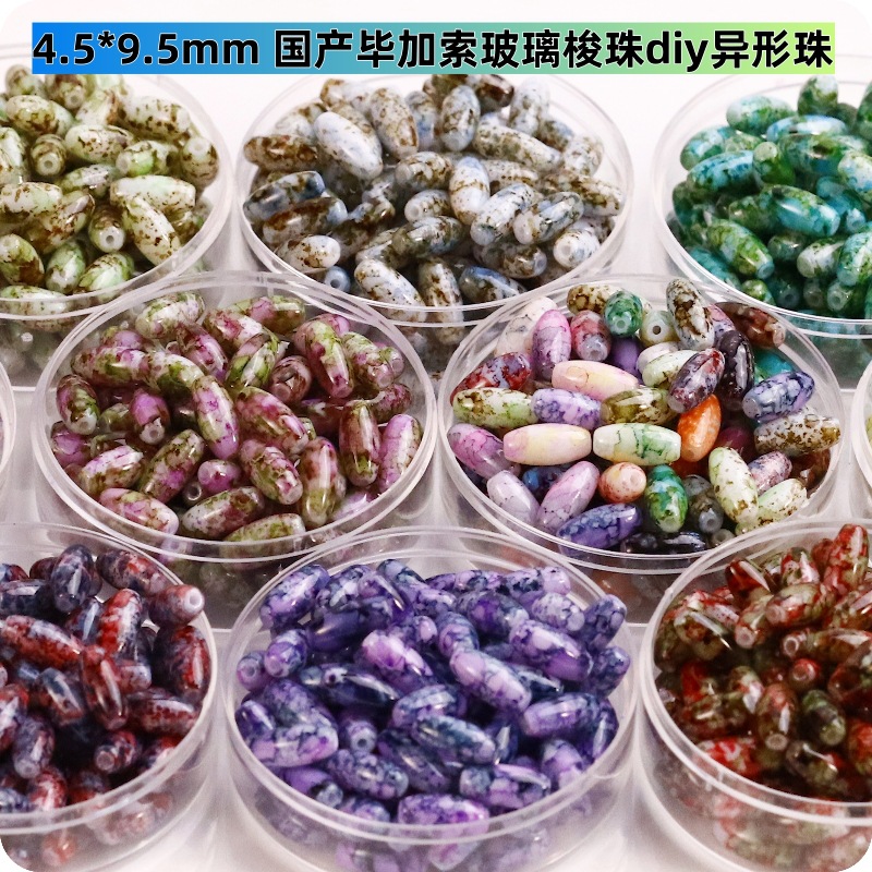 4.5*9.5 Chinese Style Picasso Rice Beads Glass Special-Shaped Beads DIY Handmade Beads Antique Jewelry Accessories