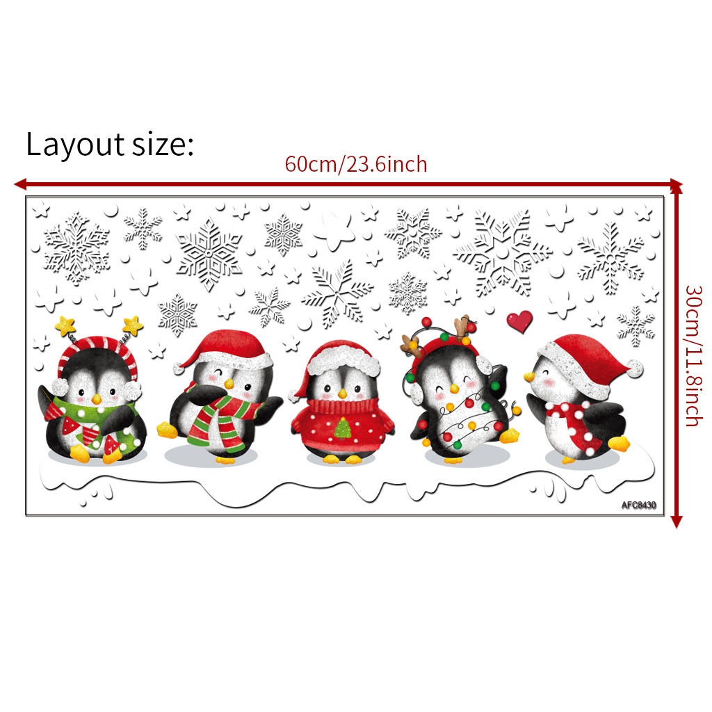 5 Penguins Christmas Snowflake Self-adhesive Stickers AFC8430 Cross-border Home Christmas Atmosphere Decorative Wall Stickers