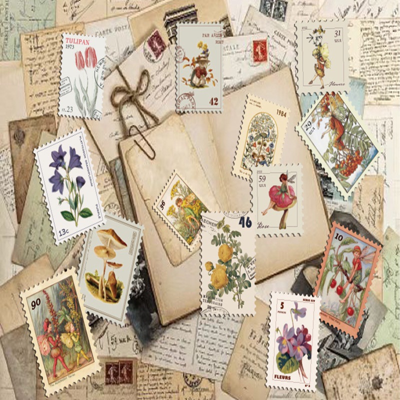 50 Stamps Effect Drawing Hand Account Stickers Retro Landscape Hand-painted Oil Painting Style Hand Account Stickers Girls Cane Stickers