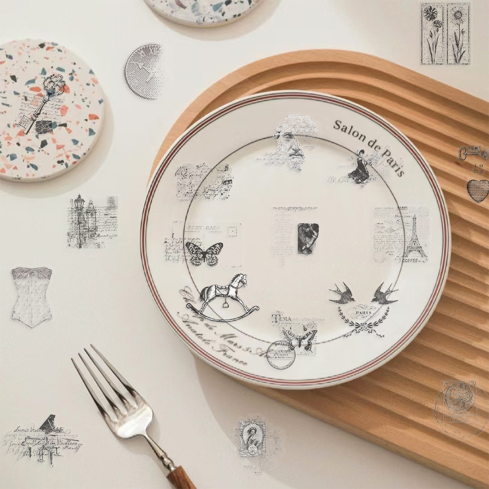 58 Retro Stamps Clip Art Waterproof Transparent PET Sticker Bag Hand Account Material Decoration Luggage Notebook