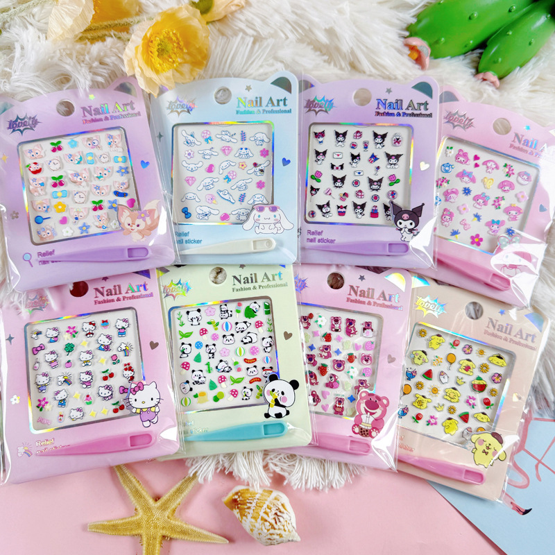 5D Nail Sticker Children Cartoon Sanrio Culomi Relief Nail Sticker Waterproof Nail Sticker