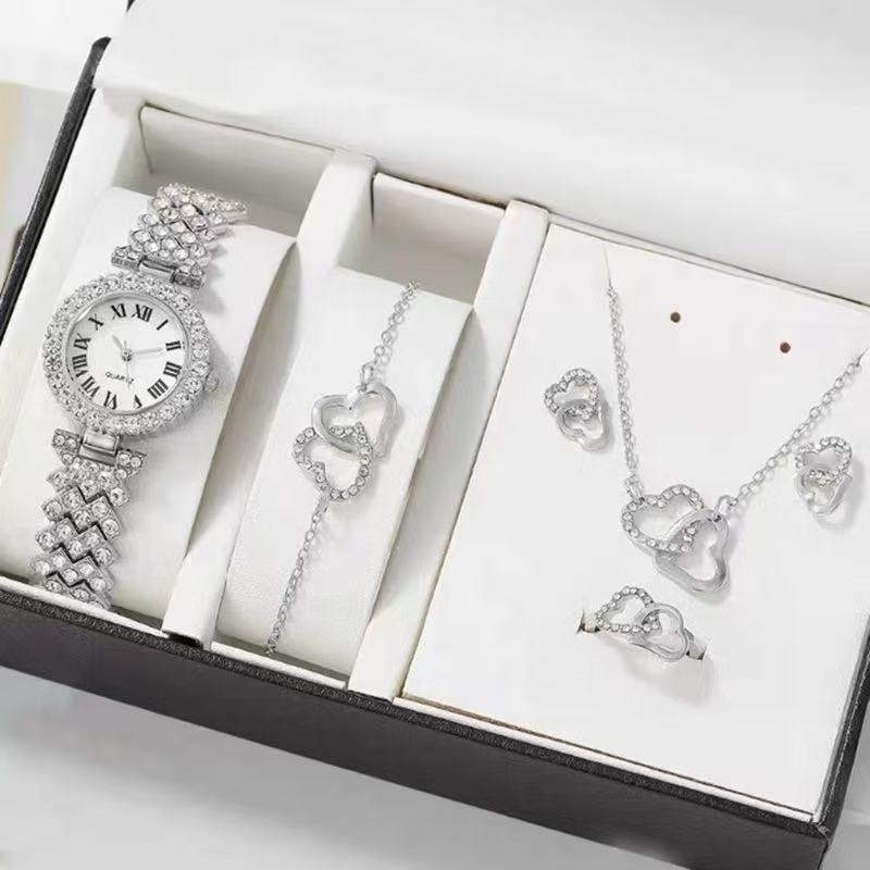5Pcs/Set New Hot Style High Fashion Diamond Women's Watch Small Fresh Retro Simple Watch Women's Bracelet Set