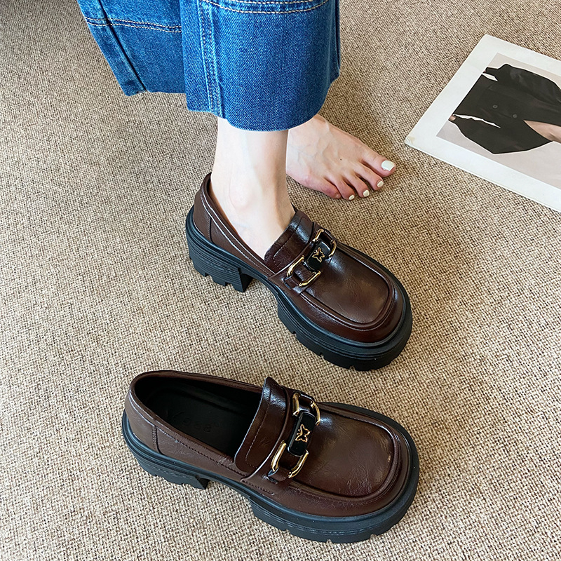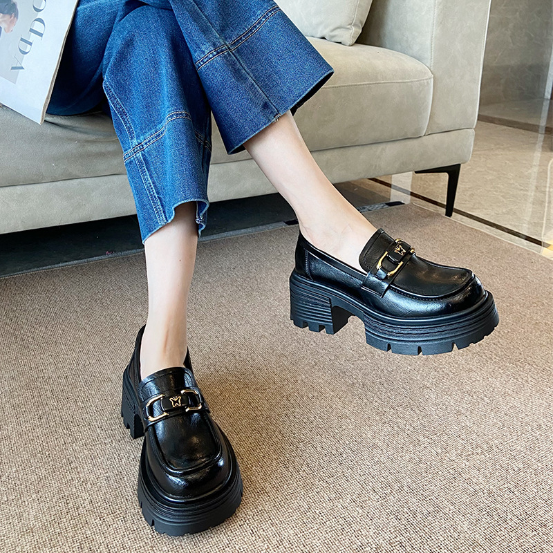 618-23 Retro British Style Thick-Soled Small Leather Shoes for Women French Comfortable Mary Jane Shoes for Women 2025 Autum New Style