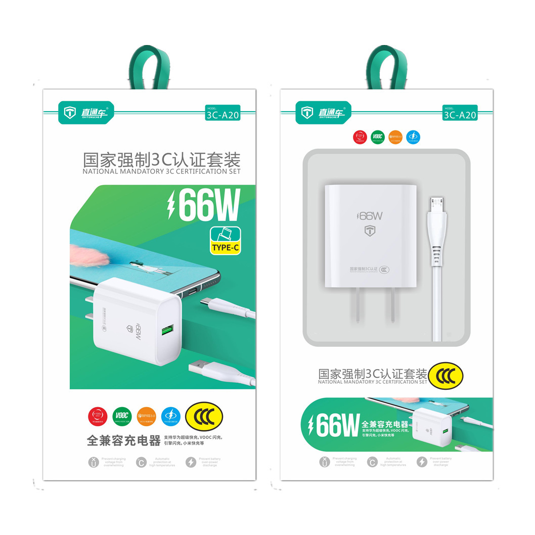 66W Flash Charging Mobile Phone Charger 3Ccc Certification Suitable for Oppovivo Xiaomi Huawei Ultra-Fast Charging Head Set