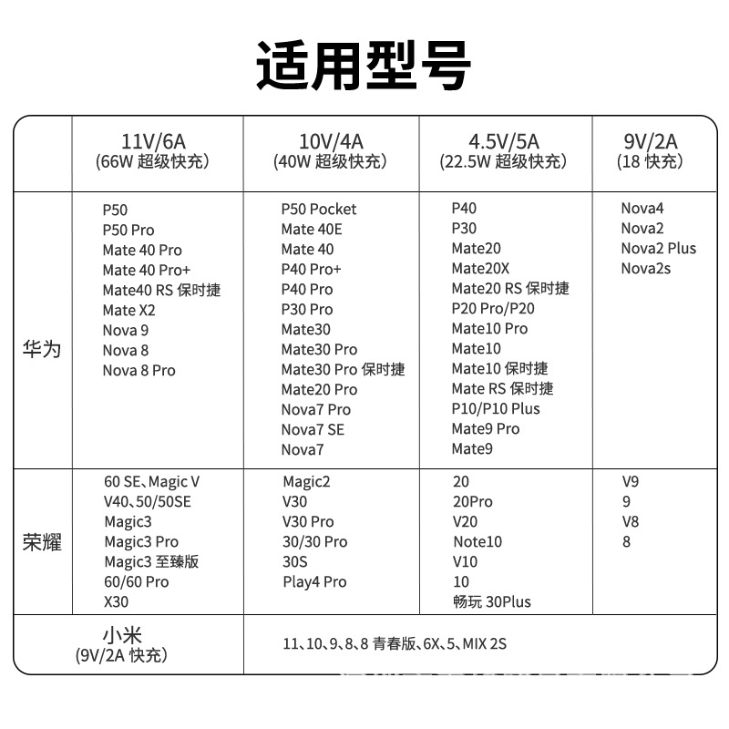 66W super fast charging head for Huawei mobile phone charger Max fast charging head wholesale 6A data cable set
