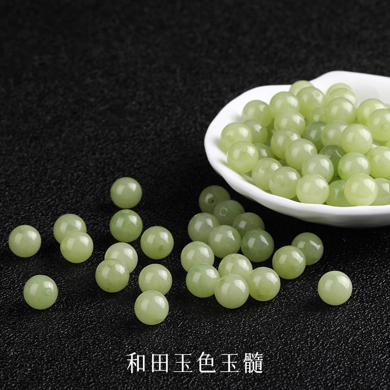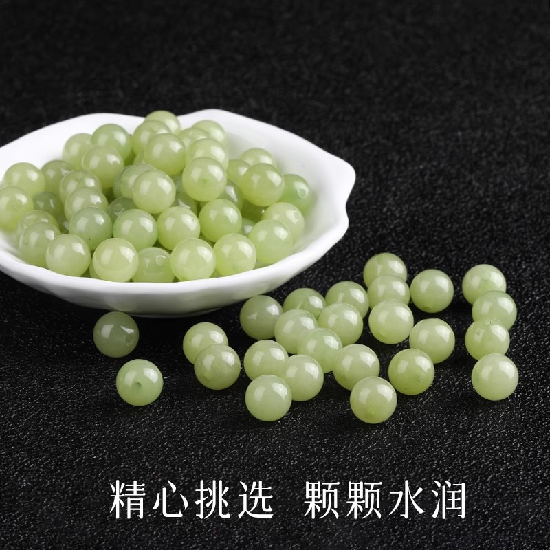 7A natural hetian jade clear water green chalcedony beads semi-finished bracelet bracelet diy handmade necklace accessories