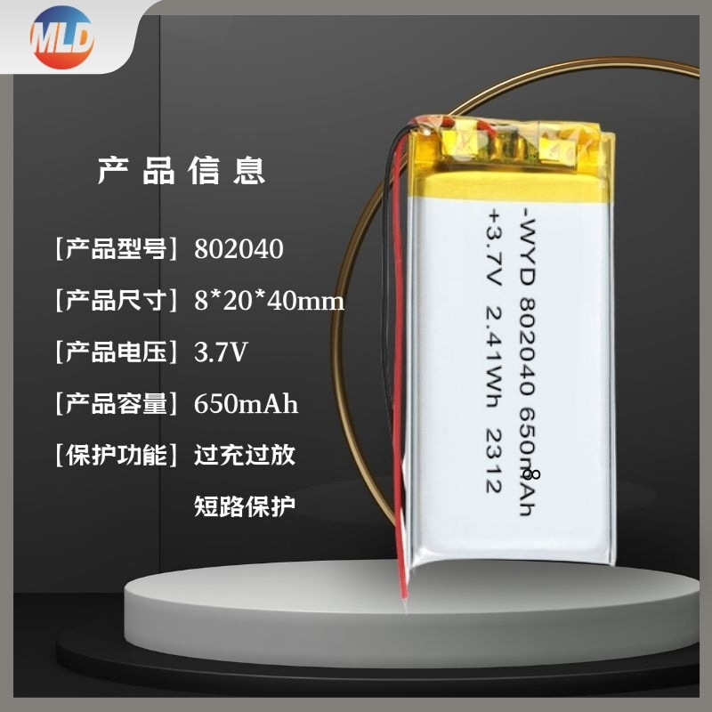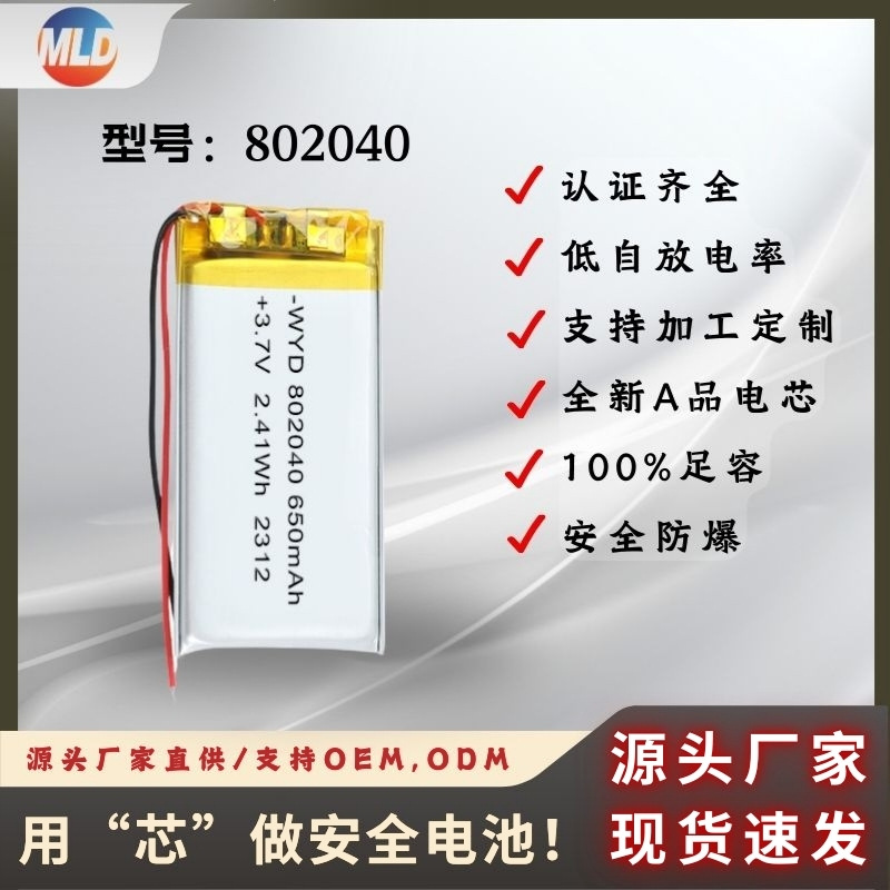 802040 Polymer Lithium Battery 650Mah Full Capacity Beauty Instrument Power Fan Rechargeable Battery Wholesale