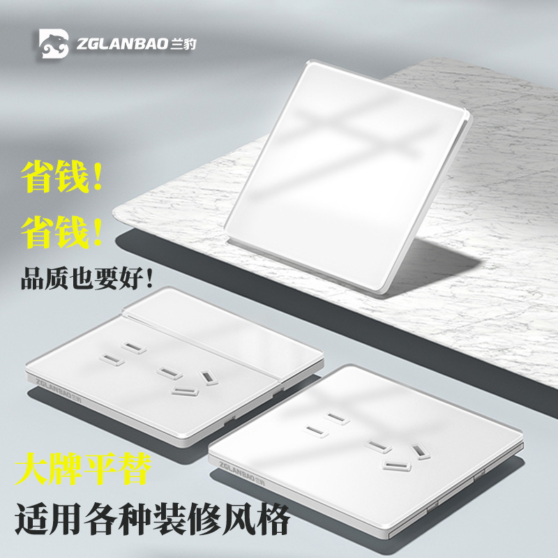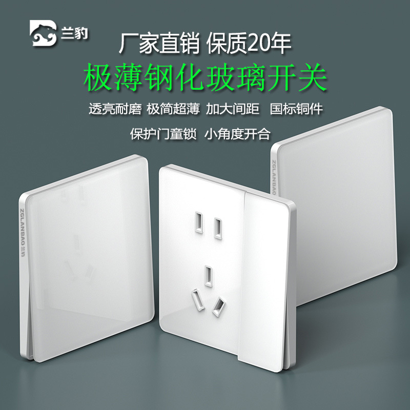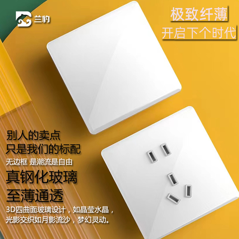 86 Ultra-Thin Tempered Glass Switch White Concealed Single and Double Control Wall Switch 23 Five-Hole Socket Panel