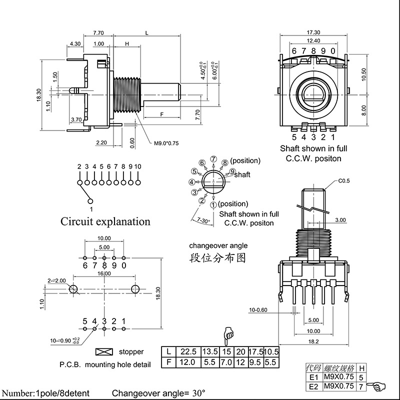 [9-speed heater dial switch] RS17 wave switch fascial gun adjustment single loop band switch