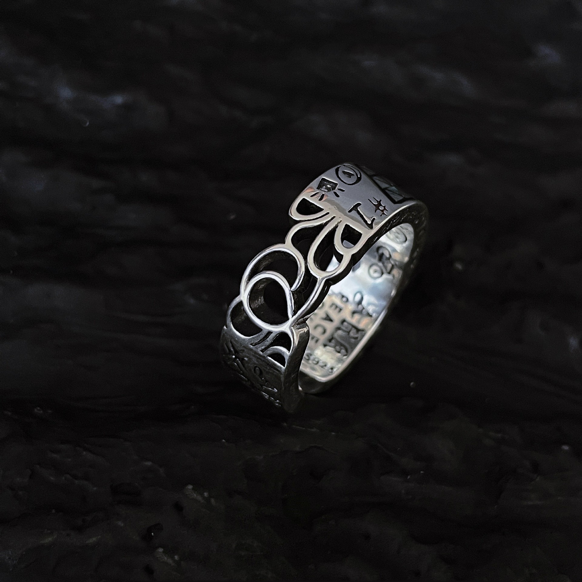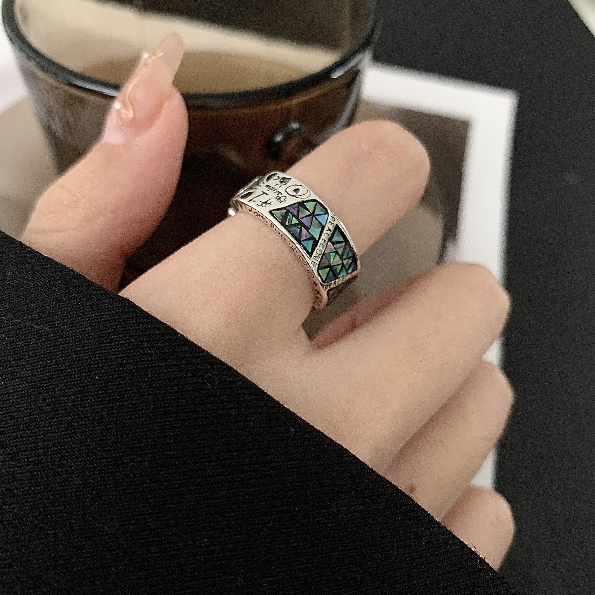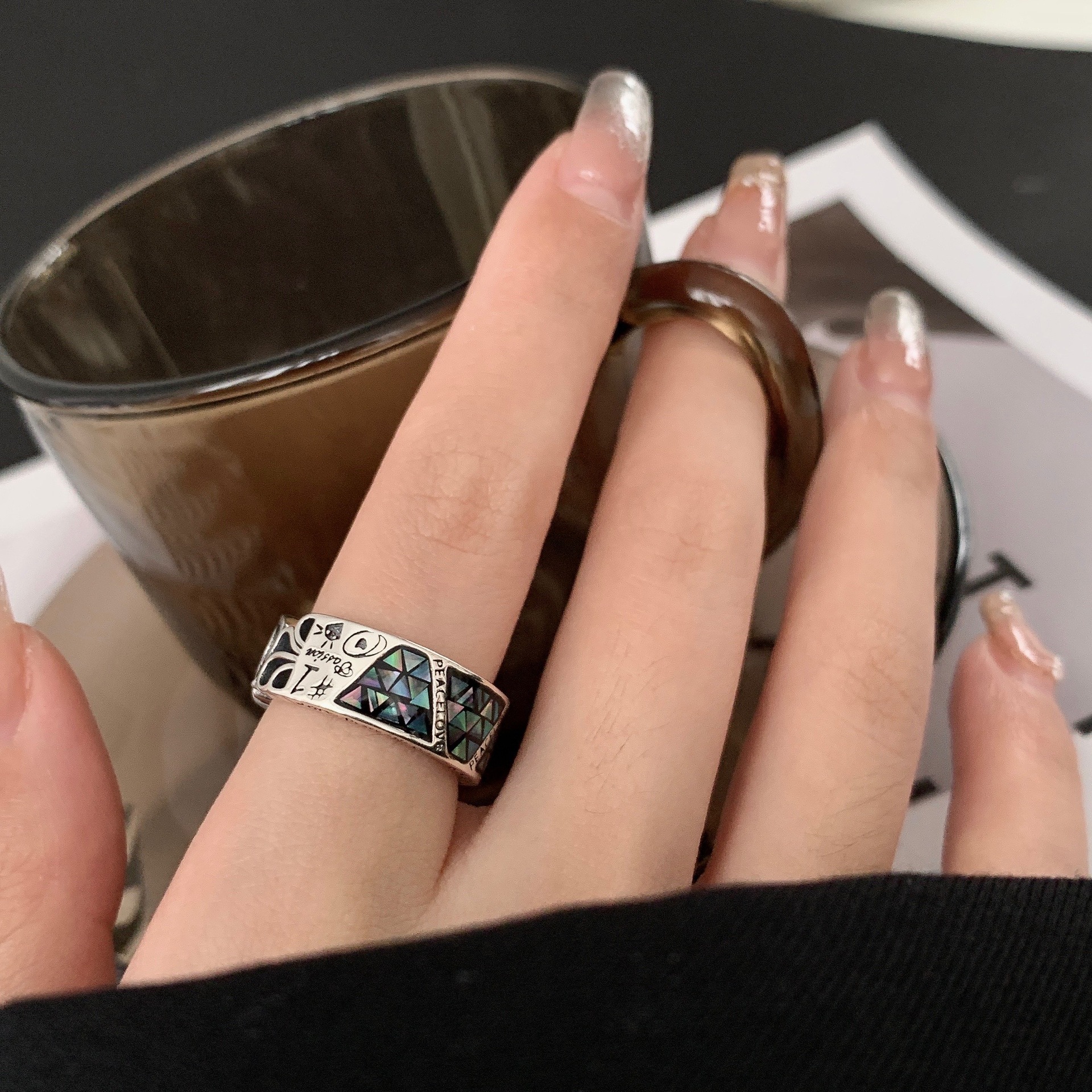 925 silver-plated color shell geometric graffiti totem open ring female light luxury niche design exquisite advanced