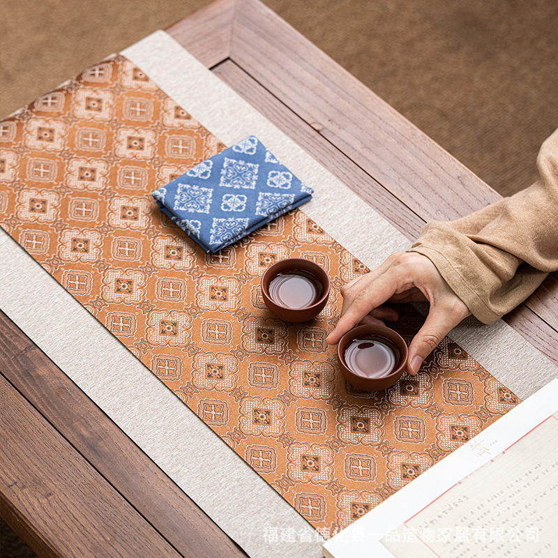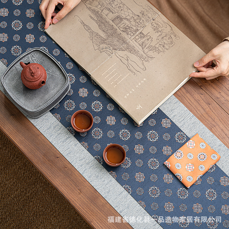 A product of brocade Tang flower double-sided waterproof table flag Chinese household tea room Zen tea table cloth tea set