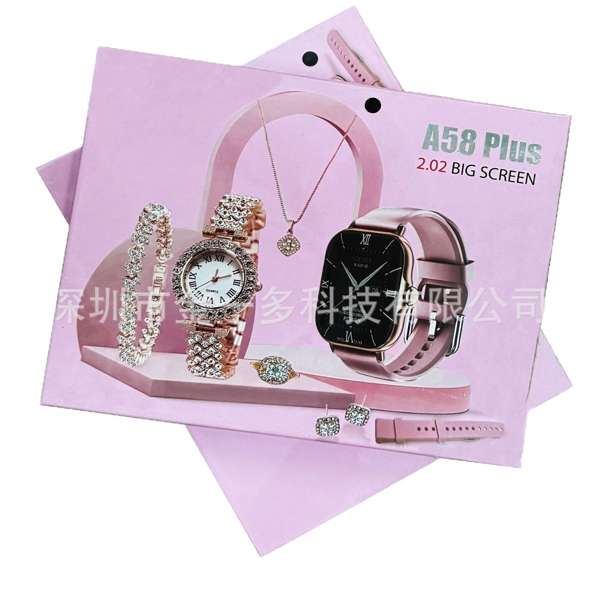 A58 Plus Smart Watch Bluetooth Call Heart Rate Detection Message Push Full Diamond Jewelry Set Box Women's Watch