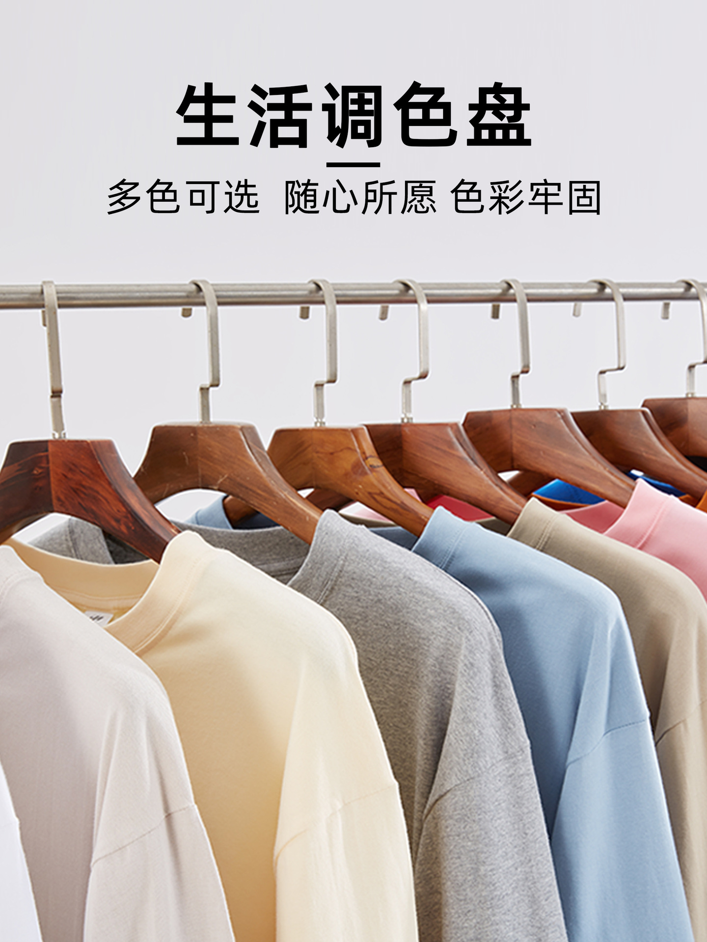 Also stop men's threaded cuffs bottoming shirt men's spring and autumn 230g heavy tide brand pure cotton solid color long sleeve T-shirt men