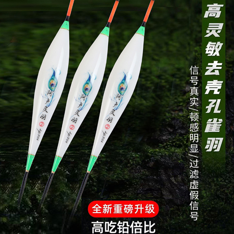 Alu Lingyu Shell Peacock Feather Float Carp Crucian Carp Eye-catching High Sensitive Black Pit Wild Fishing Fish Floating Date Pit Buoy