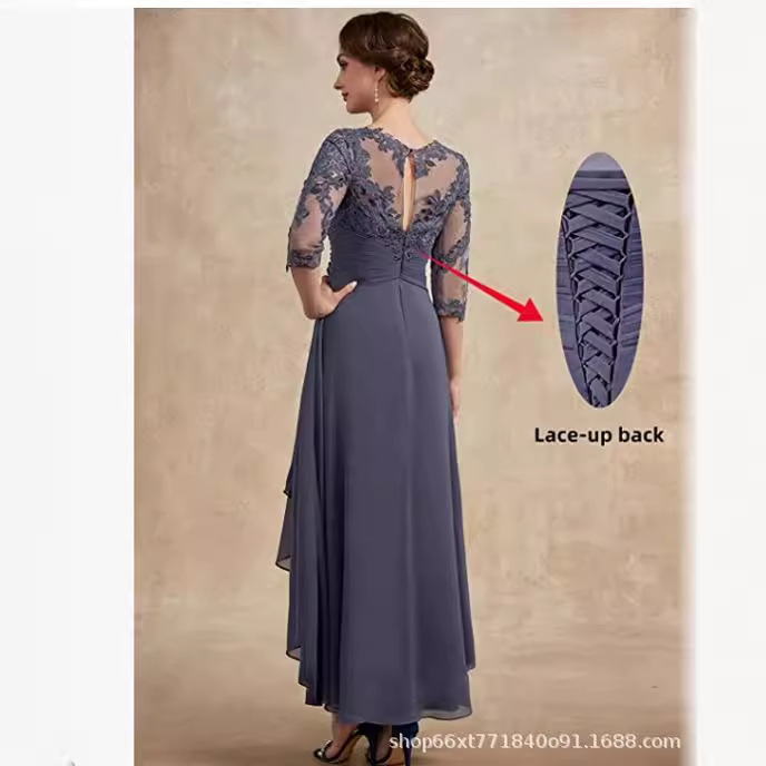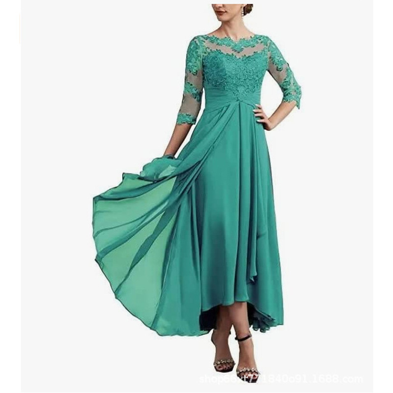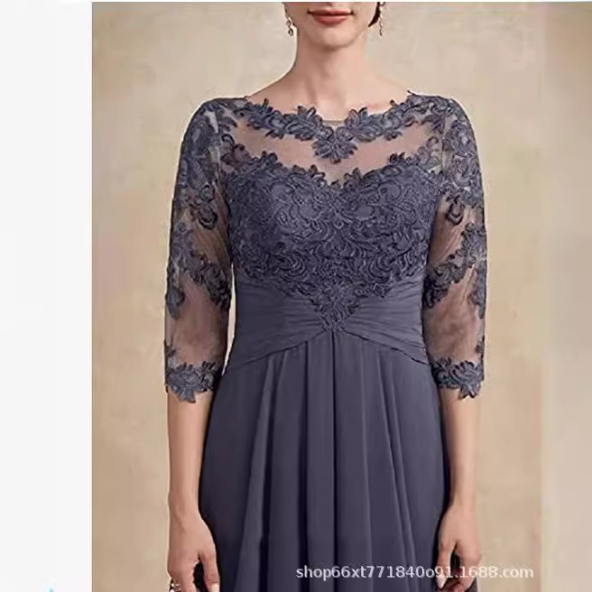 Amazon Aliexpress Export New Evening Dress Mother's Wear Mid-length Slim Mid-length Sleeve Lace Embroidered Chiffon
