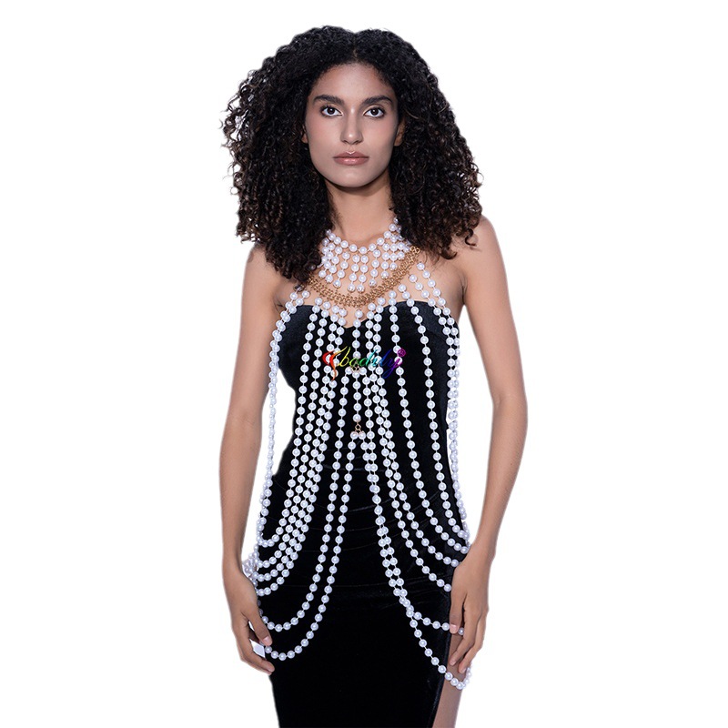Amazon Explosive Tassel Pearl Necklace Light Luxury Sweater Necklace Body Chain Multi-Layer Body Chain Pearl Chest Chain