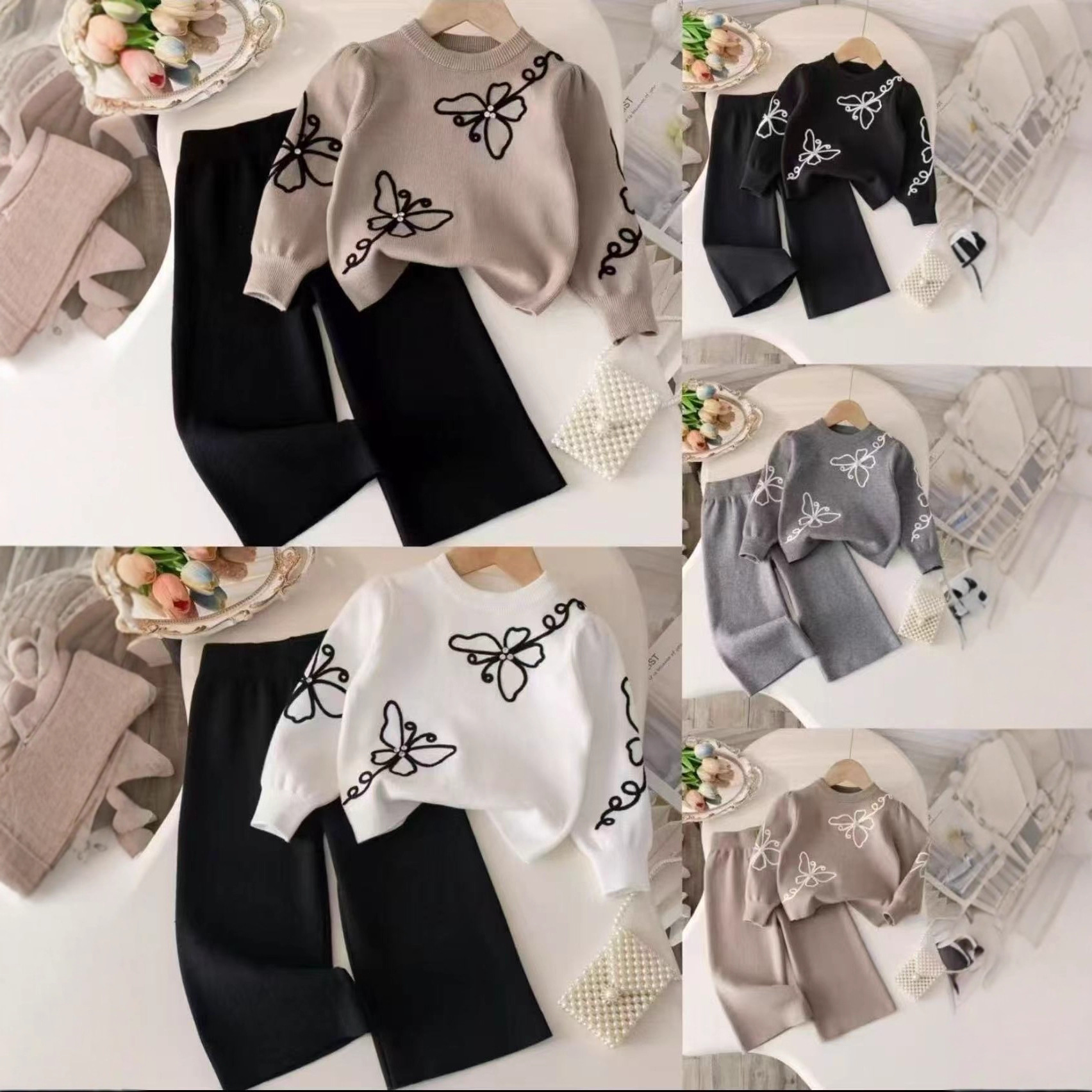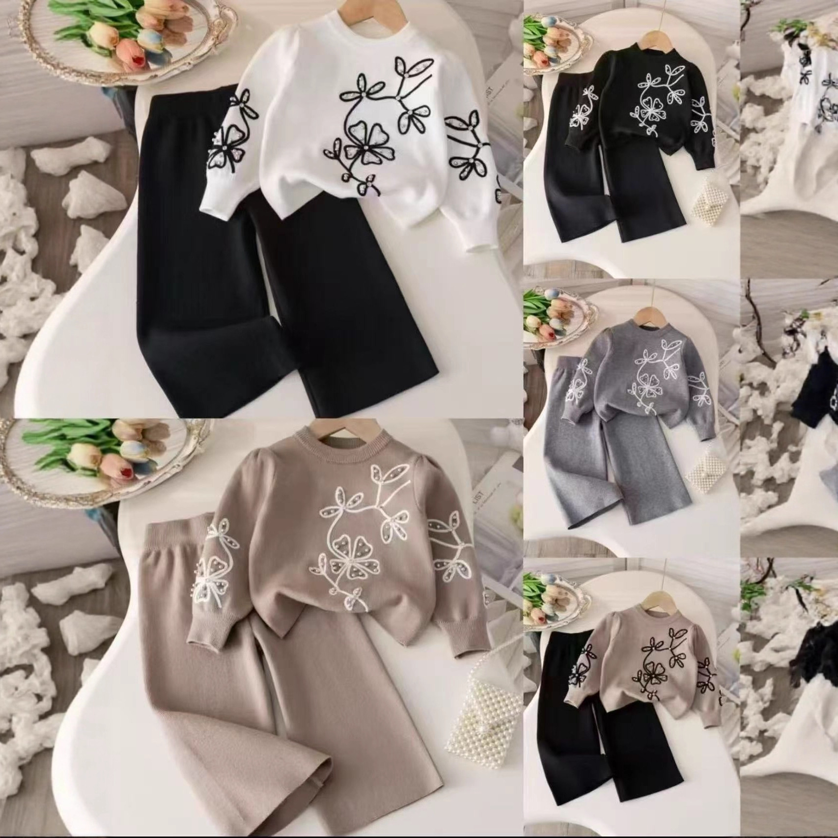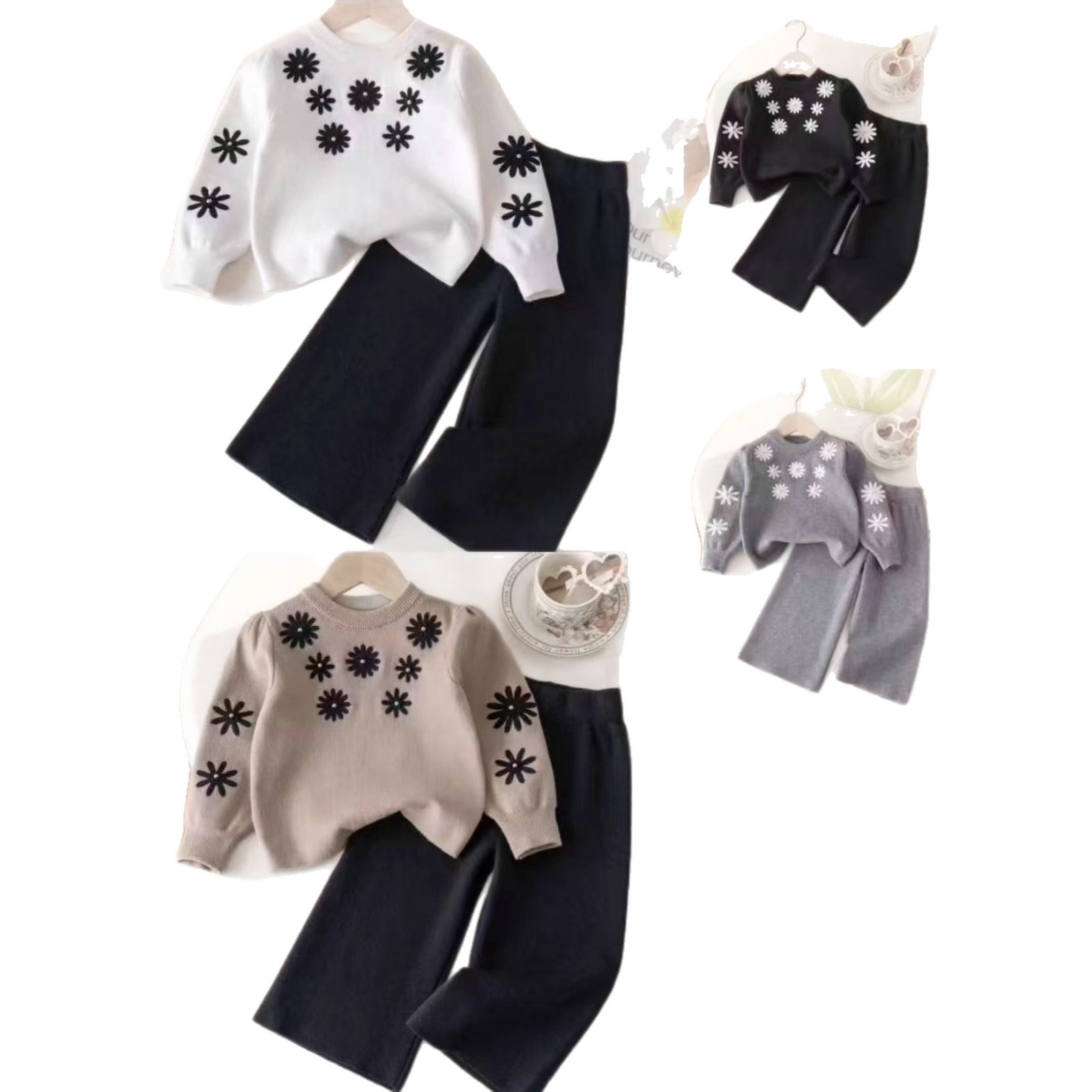 Amazon Girls Autumn and Winter Suit Korean Style Baby Girl Small Fragrance Sweater Jacket Loose Flared Pants Two-Piece Set
