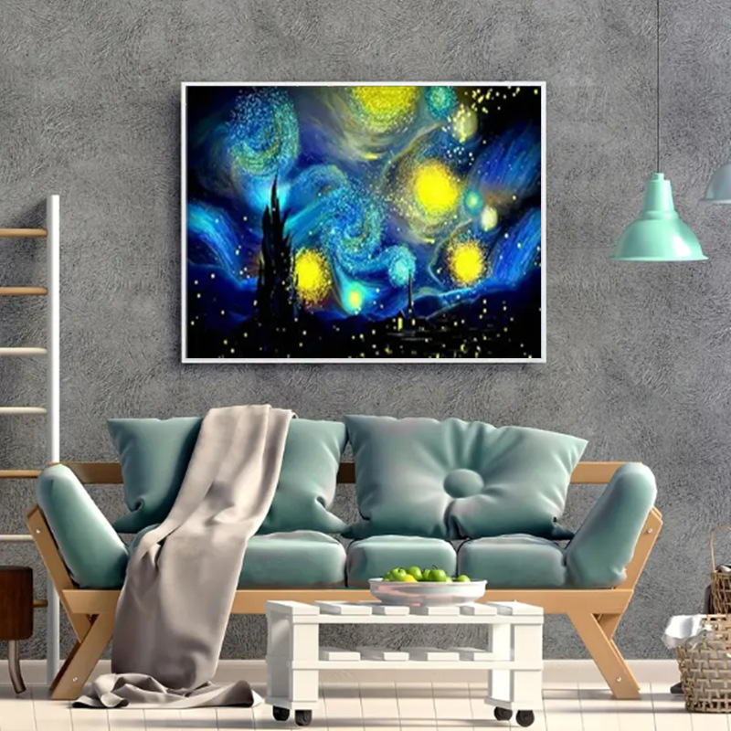 Amazon hot 5D diamond painting full diamond Van Gogh starry sky diy stick diamond cross stitch decorative hanging painting factory wholesale
