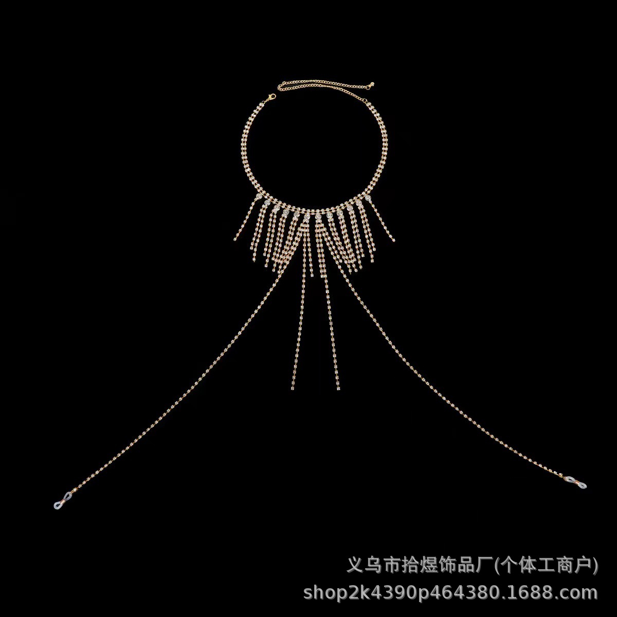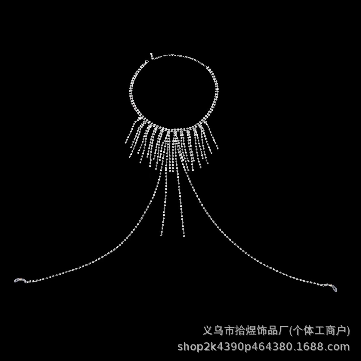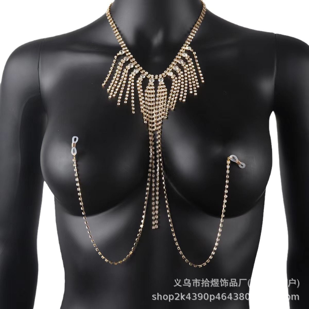 Amazon Hot Diamond Sexy Tassel Nipple Chain Nightclub Personality Rhinestone Necklace Body Chain European and American Accessories Women