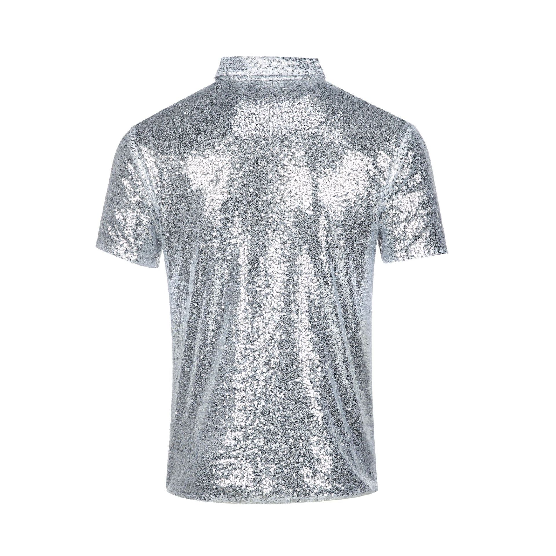 Amazon Men's T-Shirt Retro Disco Polo Shirt 70S Carnival Street Dance Stage Sequin Short Sleeve