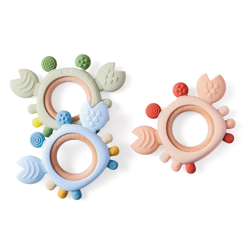 Amazon New Crab Gum Mouth Period Baby Molar Anti-eating Hand Silicone Bite Music Soothing Rattle to Play